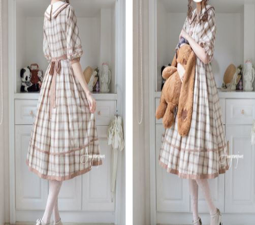 ロリータファッション/ワンピース/ドレス/ドール/半袖/ミディアム丈/ひざ丈/チェック/ガーリー/フェミニン/フレア/フリル/シャツワンピース/ワンピ/エレガント/ふんわり/華やか/可愛い/甘ロリ/クラシカル/クラロリ/姫ロリ/エレガント/上品/レトロ/お茶会/撮影/舞台/撮影用/クリスマス/バレンタイン/イベント/結婚式/ウェディング/二次会/謝恩会/デート/お呼ばれ/パーティー/デート