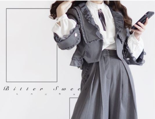 ツイードジャケット 3色 BitterSweet Lolita ショート丈 フリル ワイドスリーブ 七分袖 クラシカル クラロリ エレガント 大きいサイズ サイズ豊富 アウター ライトアウター ジャケットのみ ゴスロリ ロリータファッション loli4789