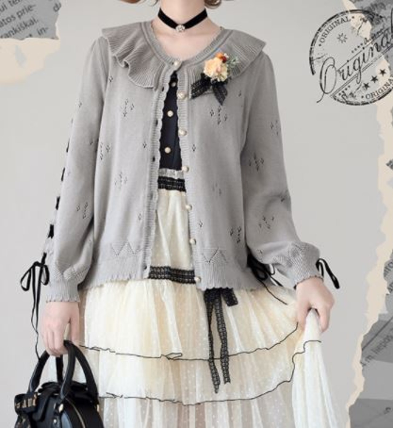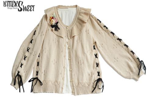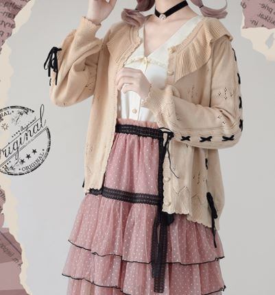 ロリータファッション/カーディガン/ニット/レースアップ/リボン/バイカラー/フリル/無地/かわいい/華やか/可愛い/甘ロリ/クラシカル/クラロリ/姫ロリ/エレガント/上品/レトロ/お茶会/撮影/舞台/撮影用/クリスマス/バレンタイン/イベント/結婚式/ウェディング/二次会/謝恩会/デート/お呼ばれ/パーティー/デート