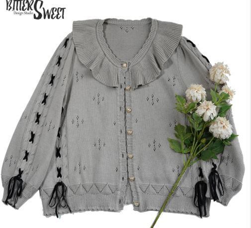 カーディガン 2色 BitterSweet Lolita ニット 羽織り 甘ロリ ボタン ハート レースアップ リボン 無地 バイカラー フリル トップス 大きいサイズ サイズ豊富 ミディアム丈 ゴスロリ ロリータファッション loli4801