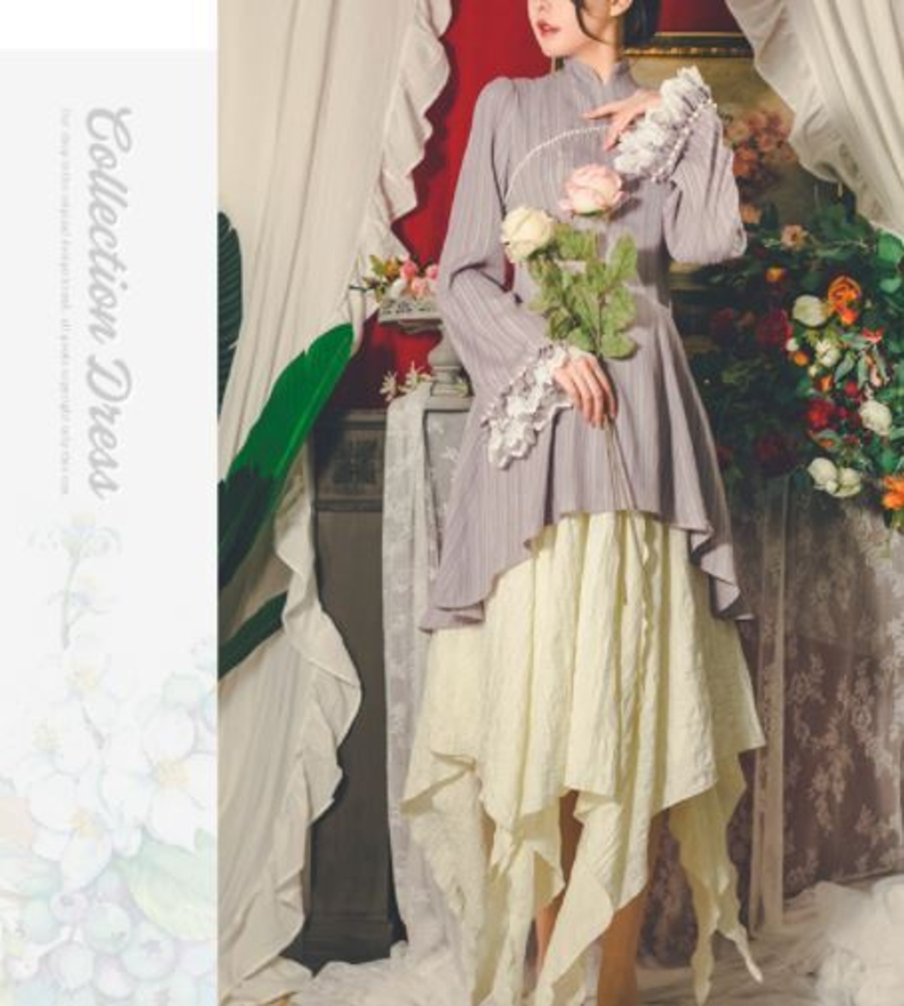 セミロリータ/チュニックワンピース/チュニック/トップス/ブラウス/チャイナドレス風/ハイネック/イミテーションパール/ビジュー/長袖/レイヤード/重ね着/きれいめ/上品/エレガント/ガーリー/パステルカラー/ジェラートカラー/マカロンカラー/セクシー/フェミニン/クラシカル/お嬢様/かわいい/ゆめかわ/ゆるふわ/ラブリー/メルヘン/スウィート/ガーリー/大人可愛い/フェミニン/上品/清楚/きれいめ/華やか/レディースファッション/秋/秋物/秋服/冬/冬物/冬コーデ/冬服/お茶会/撮影/舞台/撮影用/お呼ばれ/パーティー/普段着/普段使い/デイリー/お散歩/森/田園/デート