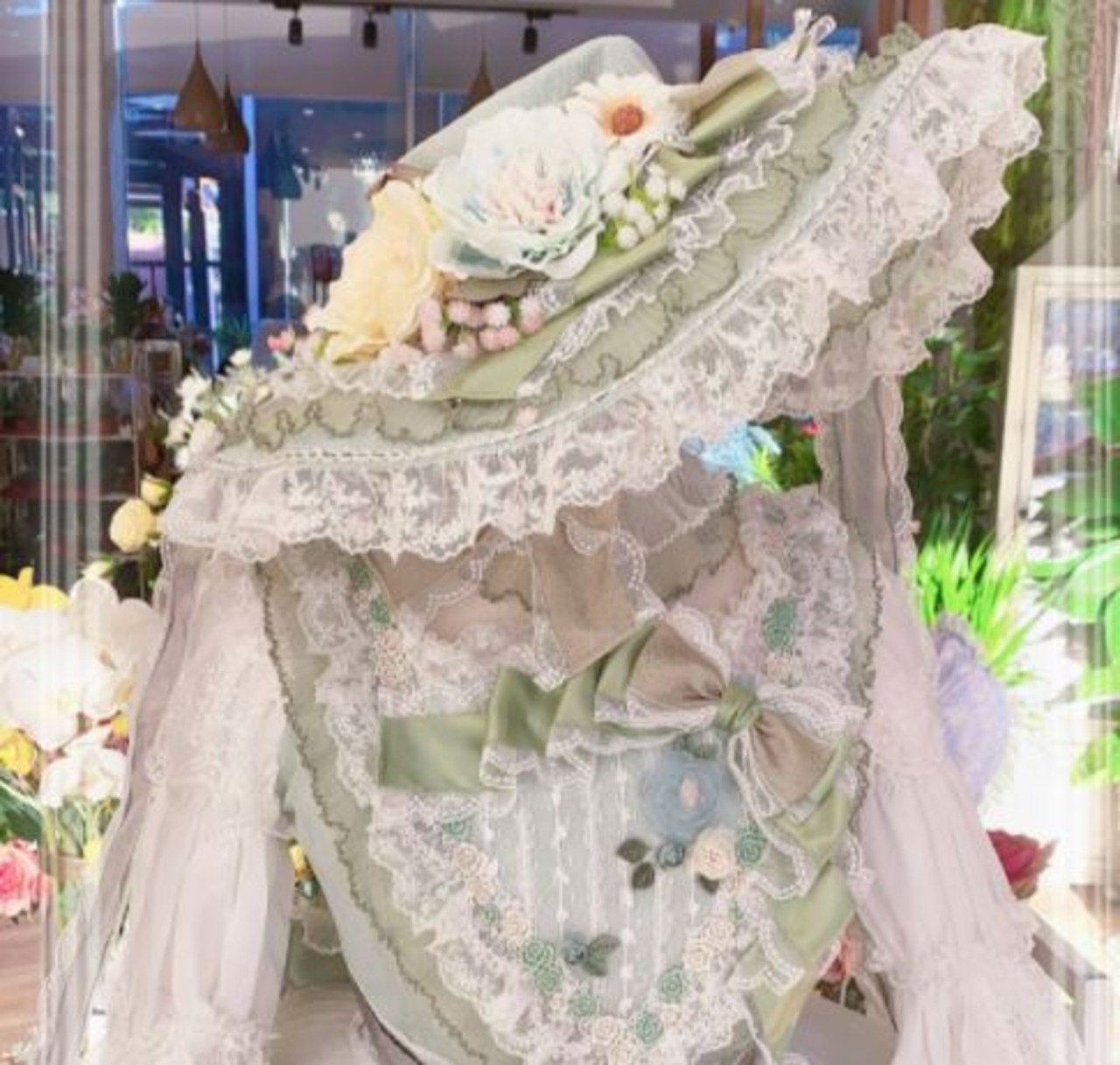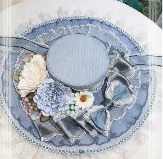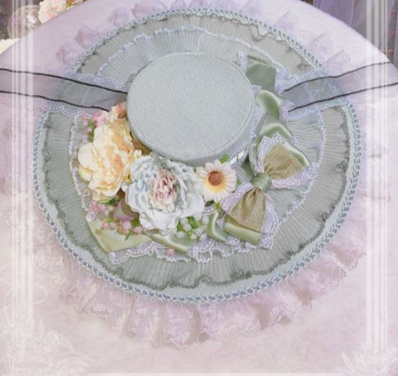 レースやリボン、フラワーモチーフをあしらった華やかなデザインの帽子です。帽子のみの販売です。