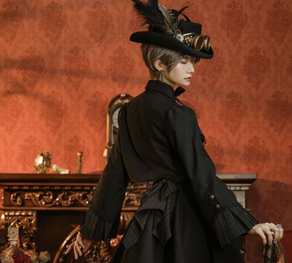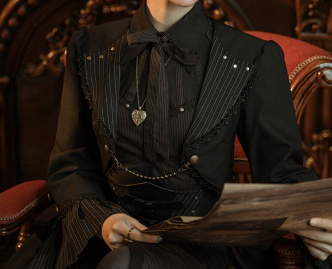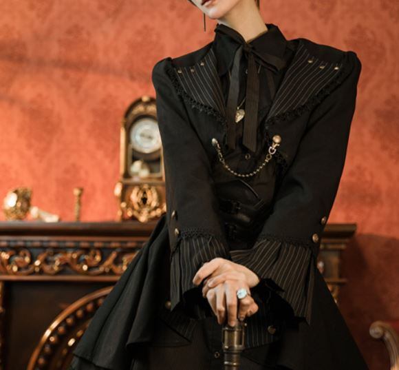 ロリータファッション/スチームパンク/Steampunk/ジャケット/アウター/ライトアウター/JK/ショート丈/レイヤード/ストライプ/長袖/かっこいい/パンク/おしゃれ/かわいい/クラシカル/クラロリ/姫ロリ/エレガント/上品/レトロ/お茶会/撮影/舞台/撮影用/クリスマス/バレンタイン/イベント/結婚式/ウェディング/二次会/謝恩会/デート/お呼ばれ/パーティー/デート
