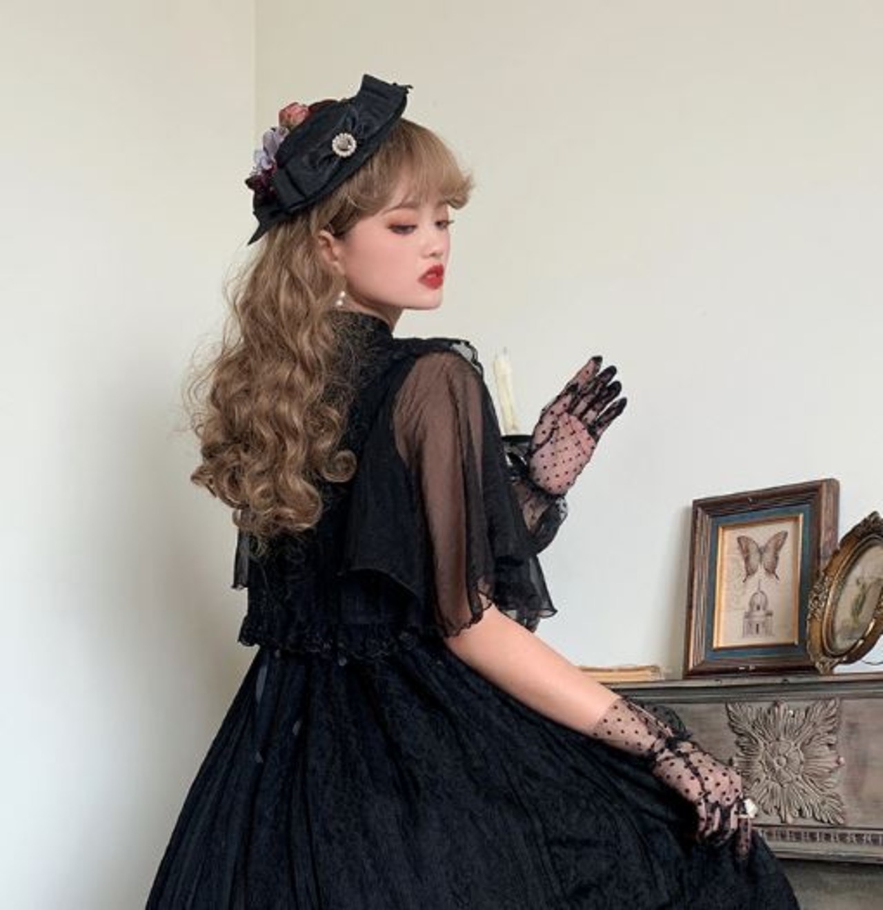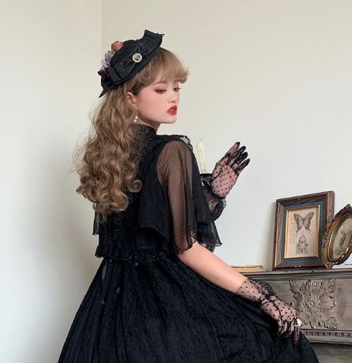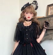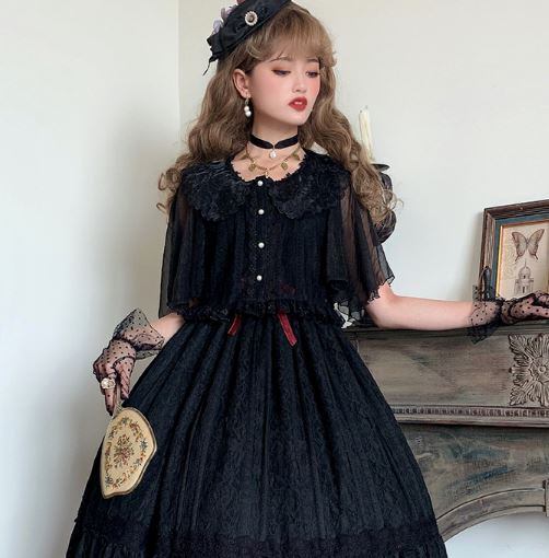 ロリータファッション/カーディガン/トップス/半袖/フレアスリーブ/ふんわり/レース/チュール/透け感/クラシカル/クラロリ/甘ロリ/リボン/かわいい/お嬢様/ドール/メイド/メイド風/ラブリー/ゆめかわいい/お呼ばれ/おしゃれ/かわいい/メイド/メイド風/森ガール/ドール/姫ロリ/エレガント/上品/レトロ/お茶会/撮影/舞台/撮影用/クリスマス/バレンタイン/イベント/結婚式/ウェディング/二次会/謝恩会/デート/お呼ばれ/パーティー/デート