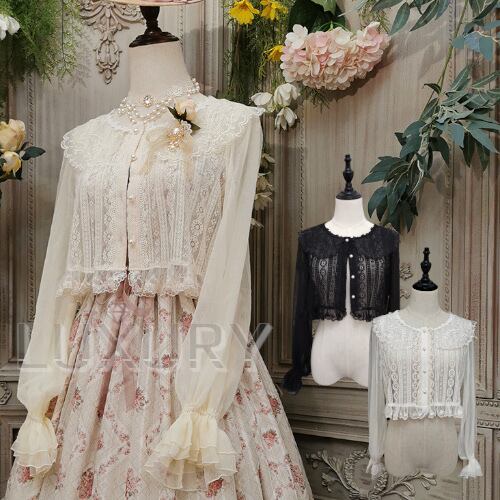 ロリータファッション/カーディガン/トップス/長袖/フレアスリーブ/ふんわり/レース/チュール/透け感/クラシカル/クラロリ/甘ロリ/リボン/かわいい/お嬢様/ドール/メイド/メイド風/ラブリー/ゆめかわいい/お呼ばれ/おしゃれ/かわいい/メイド/メイド風/森ガール/ドール/姫ロリ/エレガント/上品/レトロ/お茶会/撮影/舞台/撮影用/クリスマス/バレンタイン/イベント/結婚式/ウェディング/二次会/謝恩会/デート/お呼ばれ/パーティー/デート