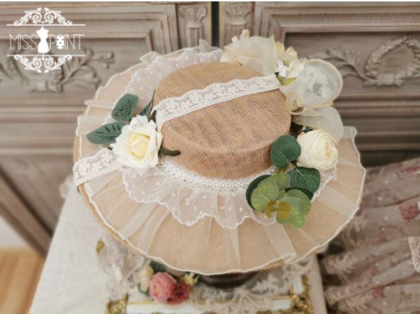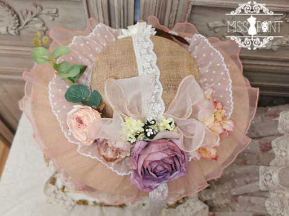 【納期40日】ハット 3色 miss point 春夏 帽子 ヘッドドレス チュール フラワーモチーフ お花モチーフ ふんわり かわいい エレガント クラシカル クラロリ 姫ロリ 甘ロリ レース ストローハット 麦わら帽子 雑貨 小物 ゴスロリ ロリータファッション loli4972
