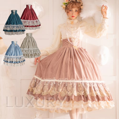 ロリータファッション/スカート/レースアップ/ロング丈/ひざ下丈/ミモレ丈/フレア/Aライン/ボトムス/ウエストマーク/美シルエット/クラシカル/クラロリ/甘ロリ/リボン/かわいい/お嬢様/ドール/メイド/メイド風/ラブリー/ゆめかわいい/お呼ばれ/おしゃれ/かわいい/メイド/メイド風/森ガール/ドール/姫ロリ/エレガント/上品/レトロ/お茶会/撮影/舞台/撮影用/クリスマス/バレンタイン/イベント/結婚式/ウェディング/二次会/謝恩会/デート/お呼ばれ/パーティー/デート