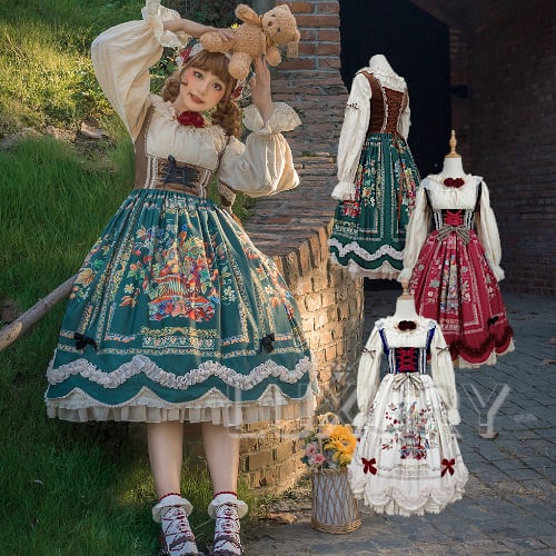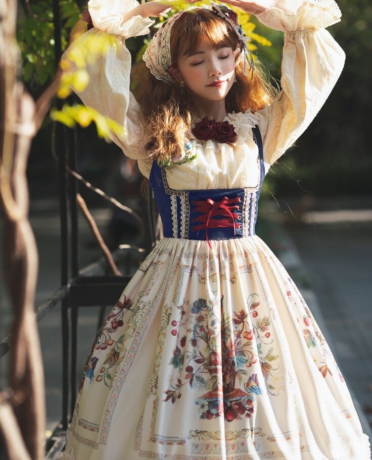ロリータファッション/ジャンパースカート/ジャンスカ/JSK/ワンピース/ドレス/ワンピ/ミディアム丈/ハイウエスト/フレア/ノースリーブ/カントリー調/プリント/花柄/フラワー/美シルエット/クラシカル/クラロリ/甘ロリ/リボン/かわいい/お嬢様/ドール/メイド/メイド風/ラブリー/ゆめかわいい/お呼ばれ/おしゃれ/かわいい/メイド/メイド風/森ガール/ドール/姫ロリ/エレガント/上品/レトロ/お茶会/撮影/舞台/撮影用/クリスマス/バレンタイン/イベント/結婚式/ウェディング/二次会/謝恩会/デート/お呼ばれ/パーティー/デート