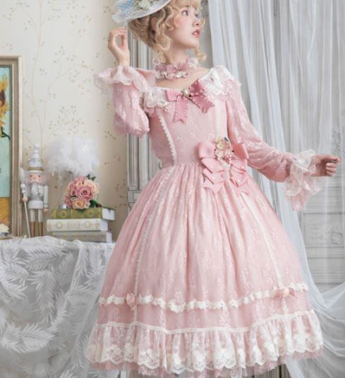 ロリータファッション/ワンピース/ドレス/ワンピ/ミディアム丈/ひざ丈/フレア/ふわふわ/フリル/レース/ビジュー/ふんわり/美シルエット/クラシカル/クラロリ/甘ロリ/リボン/かわいい/お嬢様/ドール/メイド/メイド風/ラブリー/ゆめかわいい/お呼ばれ/おしゃれ/かわいい/メイド/メイド風/森ガール/ドール/姫ロリ/エレガント/上品/レトロ/お茶会/撮影/舞台/撮影用/クリスマス/バレンタイン/イベント/結婚式/ウェディング/二次会/謝恩会/デート/お呼ばれ/パーティー/デート