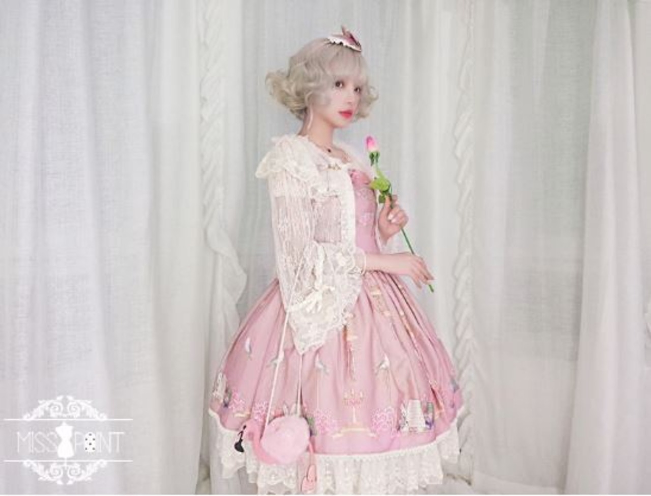 【納期40日】レースカーディガン miss point 長袖 透け感 甘ロリ クラシカル クラロリ 姫ロリ かわいい ロマンティック レース フラワーレース フリル ビジュー パール 前開き 姫袖 ロリィタ Lolita ゴスロリ ロリータファッション loli4992