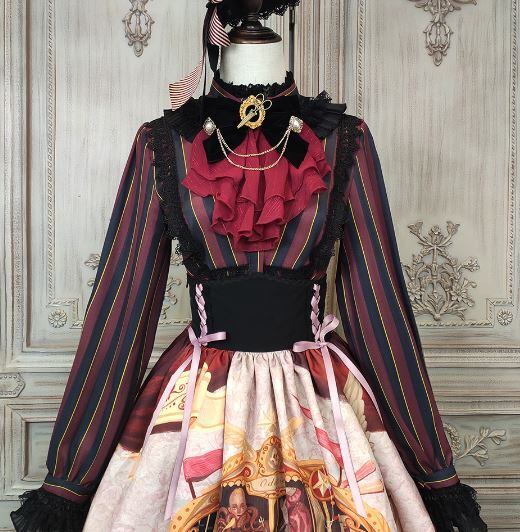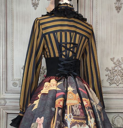 【納期40日】ブラウス2色 春秋 miss point 長袖 トップス シャツ ストライプ ゴシック フリル レース エレガント かっこいい おしゃれ 大きいサイズ サイズ豊富 撮影 イベント レイヤード 重ね着 ロリィタ Lolita ゴスロリ ロリータファッション loli5011