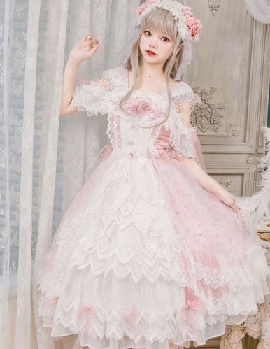 ロリータファッション/ジャンパースカート/ジャンスカ/JSK/ワンピース/ワンピ/ドレス/ミモレ丈/ひざ丈/ミディアム丈/ノースリーブ/ローズ/お花モチーフ/リボン/森ガール/ウエストマーク/フリル/レース/フラワーレース/エレガント/甘ロリ/クラシカル/クラロリ/姫ロリ/かわいい/お嬢様/ドール/メイド/メイド風/ラブリー/ゆめかわいい/お呼ばれ/おしゃれ/かわいい/メイド/メイド風/森ガール/ドール/姫ロリ/エレガント/上品/レトロ/お茶会/撮影/舞台/撮影用/クリスマス/バレンタイン/イベント/結婚式/ウェディング/二次会/謝恩会/デート/お呼ばれ/パーティー/デート