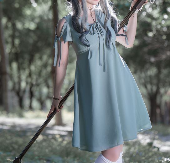 ロリータファッション/スチームパンク/Steampunk/ワンピース/ワンピ/リボン/シフォン/ひざ丈/ひざ上丈/Aライン/半袖/オフショルダー/レースアップ/無地/カジュアル/かっこいい/お呼ばれ/おしゃれ/かわいい/メイド/メイド風/森ガール/ドール/姫ロリ/エレガント/上品/レトロ/お茶会/撮影/舞台/撮影用/クリスマス/バレンタイン/イベント/結婚式/ウェディング/二次会/謝恩会/デート/お呼ばれ/パーティー/デート