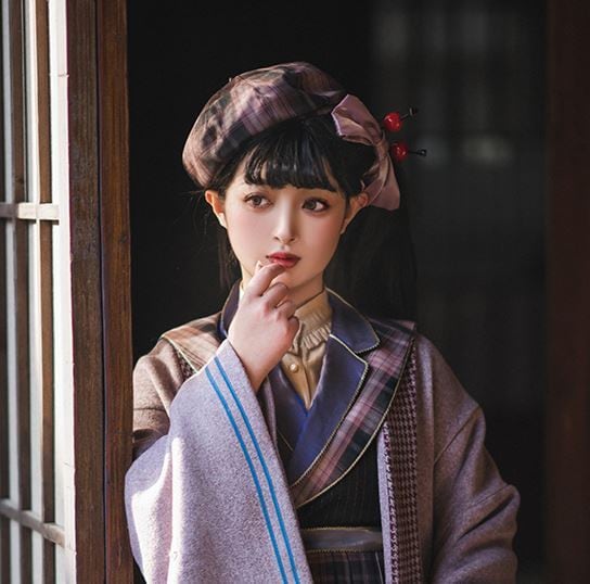 ベレー帽 和ロリ 和風 帽子のみ ヘッドドレス 帽子 小物 雑貨 チェック ふんわり あったか 秋冬 撮影 イベント 上品 レトロ グレー フリーサイズ ワンサイズ Lolita ロリィタ ゴスロリ ロリータファッション loli5071