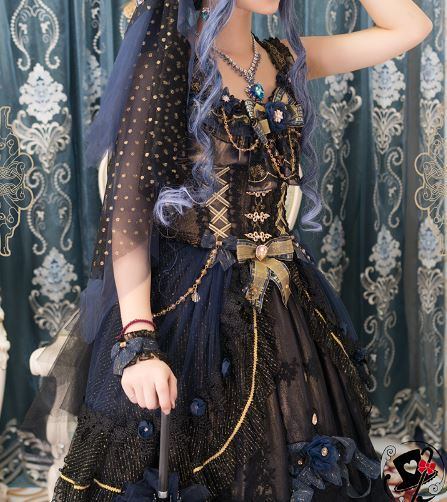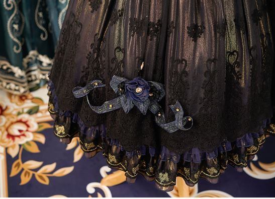 ジャンスカ JSK ワンピース ワンピ JSKのみ 春夏 ミディアム丈 ひざ下丈 フレア ふんわり ドレス ワンサイズ レースアップ ノースリーブ レイヤード 重ね着 エレガント ゴージャス Lolita ロリィタ ゴスロリ ロリータファッション loli5076