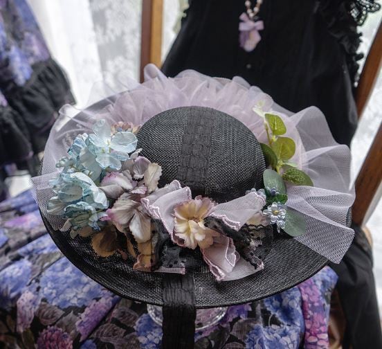 ロリータファッション/フラワーハット/ハット/カンカン帽/帽子/ヘッドドレス/フラワーモチーフ/リボン/レース/甘ロリ/秋冬/クラシカル/クラロリ/姫ロリ/お呼ばれ/おしゃれ/かわいい/メイド/メイド風/森ガール/ドール/姫ロリ/エレガント/上品/レトロ/お茶会/撮影/舞台/撮影用/クリスマス/バレンタイン/イベント/結婚式/ウェディング/二次会/謝恩会/デート/お呼ばれ/パーティー/デート