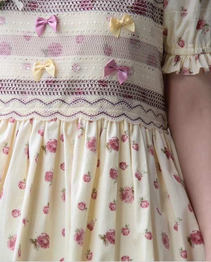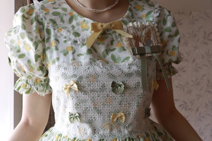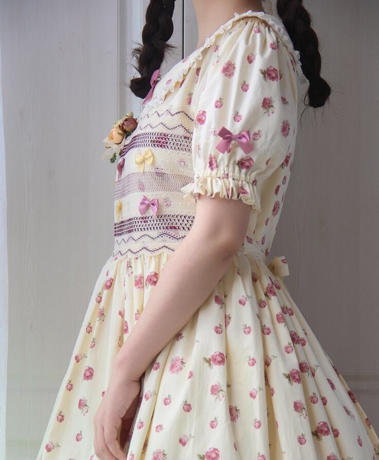 ロリータファッション/ワンピース/半袖/森ガール/ミニ丈/小花柄/フラワー/リーフ/パフスリーブ/姫袖/フラワープリント/花柄/レース/フリル/フレア/バックリボン/リボン/レース/甘ロリ/秋冬/クラシカル/クラロリ/姫ロリ/お呼ばれ/おしゃれ/かわいい/メイド/メイド風/森ガール/ドール/姫ロリ/エレガント/上品/レトロ/お茶会/撮影/舞台/撮影用/クリスマス/バレンタイン/イベント/結婚式/ウェディング/二次会/謝恩会/デート/お呼ばれ/パーティー/デート