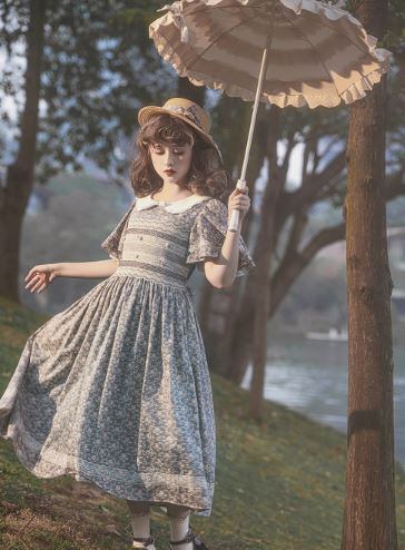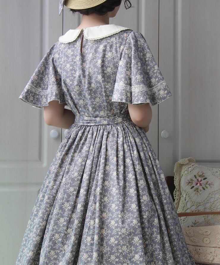 ロリータファッション/ワンピース/半袖/ロング丈/ミディアム丈/森ガール/小花柄/フラワー/リーフ/フレアスリーブ/姫袖/フラワープリント/花柄/レース/フリル/フレア/バックリボン/リボン/レース/甘ロリ/秋冬/クラシカル/クラロリ/姫ロリ/お呼ばれ/おしゃれ/かわいい/メイド/メイド風/森ガール/ドール/姫ロリ/エレガント/上品/レトロ/お茶会/撮影/舞台/撮影用/クリスマス/バレンタイン/イベント/結婚式/ウェディング/二次会/謝恩会/デート/お呼ばれ/パーティー/デート