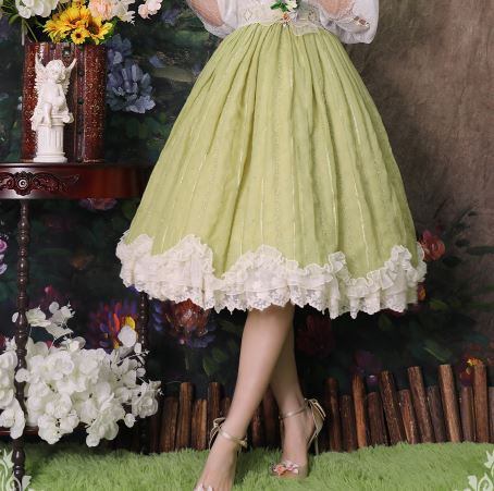 ロリータファッション/スカート/スカートのみ/シフォン/レース/フレア/ミディアム丈/ふんわり/ひざ丈/レース/甘ロリ/秋冬/クラシカル/クラロリ/姫ロリ/お呼ばれ/おしゃれ/かわいい/メイド/メイド風/森ガール/ドール/姫ロリ/エレガント/上品/レトロ/お茶会/撮影/舞台/撮影用/クリスマス/バレンタイン/イベント/結婚式/ウェディング/二次会/謝恩会/デート/お呼ばれ/パーティー/デート