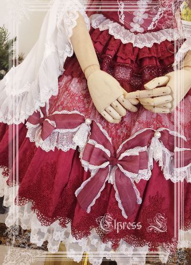 ロリータファッション/ジャンスカ/JSK/ワンピース/ワンピ/ミディアム丈/ひざ下丈/フレア/ビジュー/リボン/レースアップ/バックコンシャス/レース/お呼ばれ/おしゃれ/かわいい/メイド/メイド風/森ガール/ドール/姫ロリ/エレガント/上品/レトロ/お茶会/撮影/舞台/撮影用/クリスマス/バレンタイン/イベント/結婚式/ウェディング/二次会/謝恩会/デート/お呼ばれ/パーティー/デート