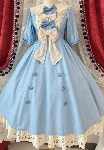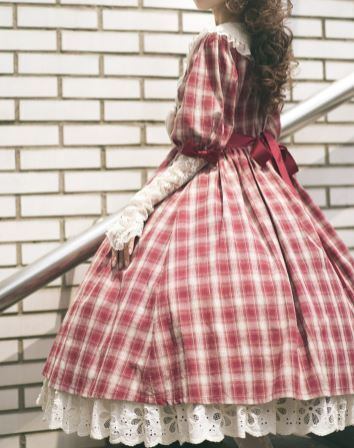 ロリータファッション/ワンピース/ワンピ/ドレス/半袖/パフスリーブミディアム丈/チェック柄/プリント/ひざ下丈/フレア/ビジュー/リボン/レースアップ/バックコンシャス/レース/お呼ばれ/おしゃれ/かわいい/メイド/メイド風/森ガール/ドール/姫ロリ/エレガント/上品/レトロ/お茶会/撮影/舞台/撮影用/クリスマス/バレンタイン/イベント/結婚式/ウェディング/二次会/謝恩会/デート/お呼ばれ/パーティー/デート