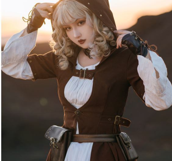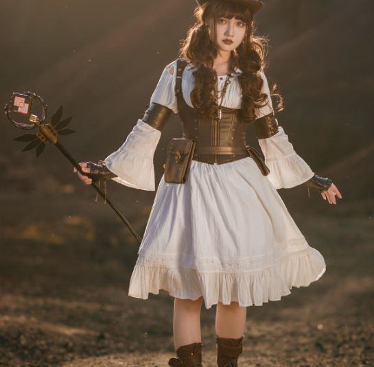 コットンワンピース Steampunk スチームパンク 秋冬 春秋 長袖 ミディアム丈 ひざ丈 刺しゅう コットン かわいい ふんわり フレア ワンピ ワンピのみ フリーサイズ loli5164