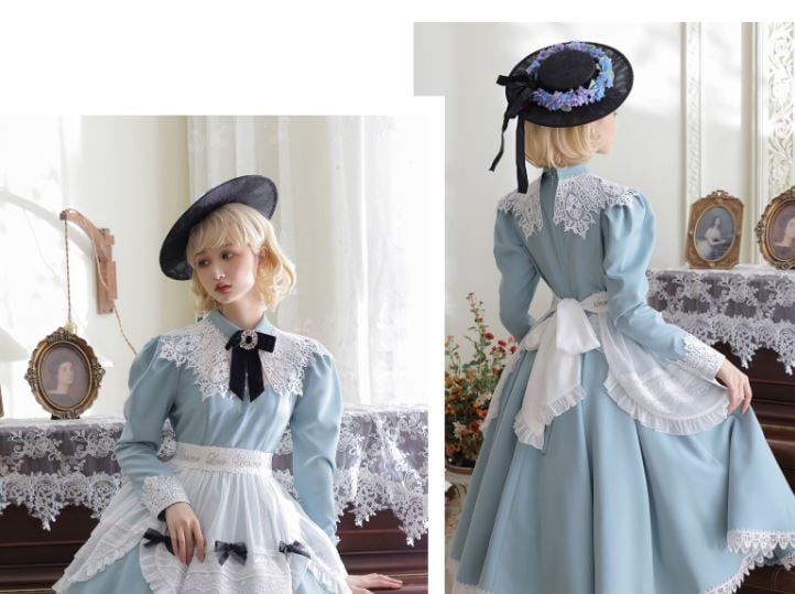 ロリータファッション/ワンピース/春夏/長袖/リボン/ロング丈/レース/フレア/ハイネック/クラロリ/クラシカル/甘ロリ/フリル/ふんわり/森ガール/ドール/姫ロリ/エレガント/上品/レトロ/お茶会/撮影/舞台/撮影用/クリスマス/バレンタイン/イベント/結婚式/ウェディング/二次会/謝恩会/デート/お呼ばれ/パーティー/デート