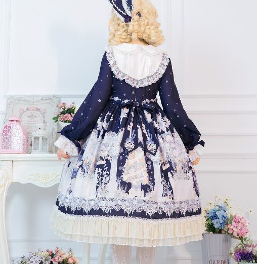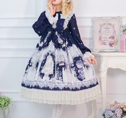 ロリータファッション/ワンピース/春夏/長袖/リボン/くま/クマ/テディベア/ミディアム丈/ミモレ丈/プリント/レース/ビジュー/フレア/ハイネック/クラロリ/クラシカル/甘ロリ/フリル/ふんわり/森ガール/ドール/姫ロリ/エレガント/上品/レトロ/お茶会/撮影/舞台/撮影用/クリスマス/バレンタイン/イベント/結婚式/ウェディング/二次会/謝恩会/デート/お呼ばれ/パーティー/デート