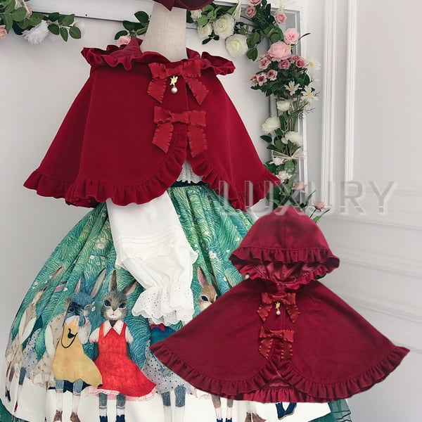 ロリータファッション/甘ロリ/フードコート/コート/アウター/秋冬/リボン/フード付き/帽子付き/フリル/ふんわり/森ガール/ドール/姫ロリ/エレガント/上品/レトロ/お茶会/撮影/舞台/撮影用/クリスマス/バレンタイン/イベント/結婚式/ウェディング/二次会/謝恩会/デート/お呼ばれ/パーティー/デート