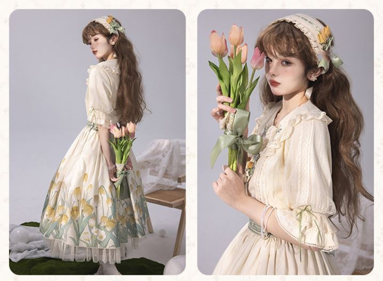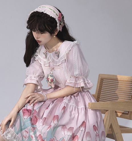 【納期40日】チューリップ ヘッドドレス 新色登場 NyaNya ヘッドドレス フリル レース リボン かわいい 甘ロリ 雑貨 小物 プレゼント イエロー ピンク ブルー Lolita ロリィタ ゴスロリ ロリータファッション loli5280