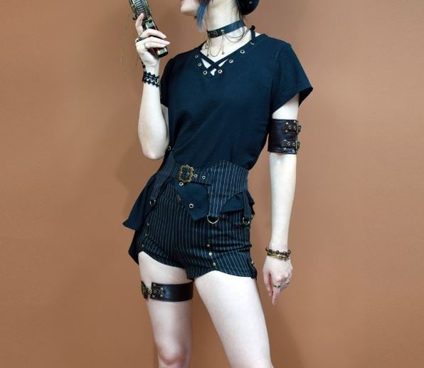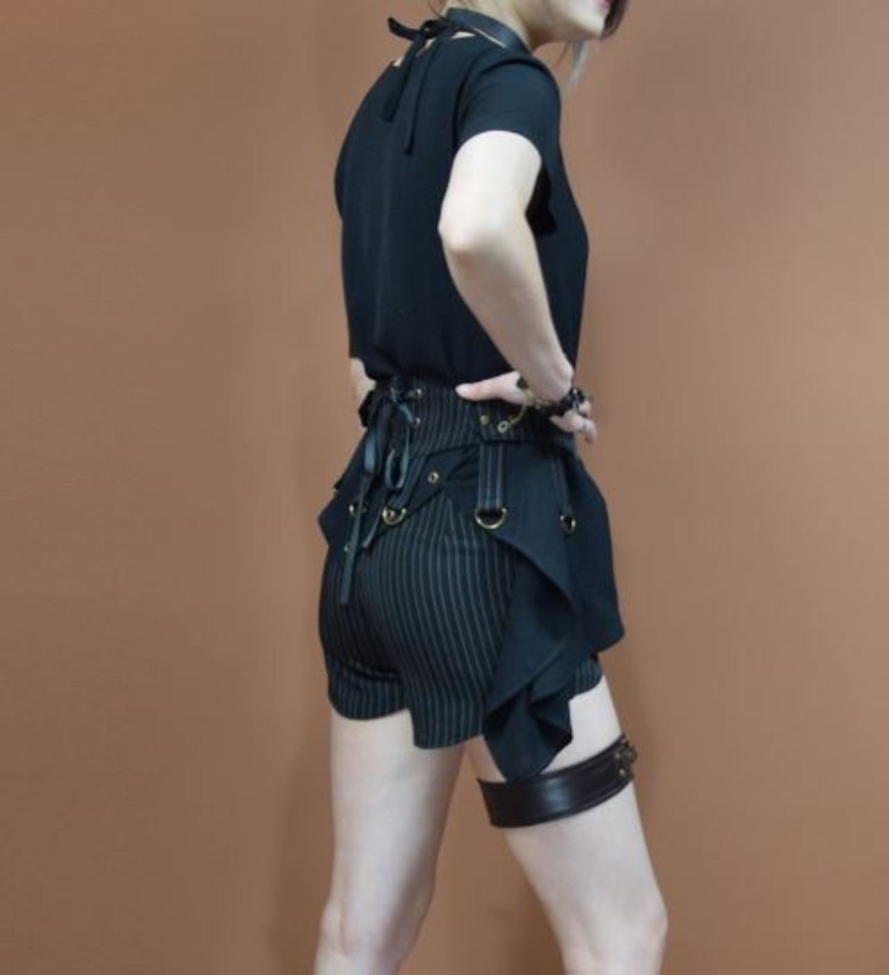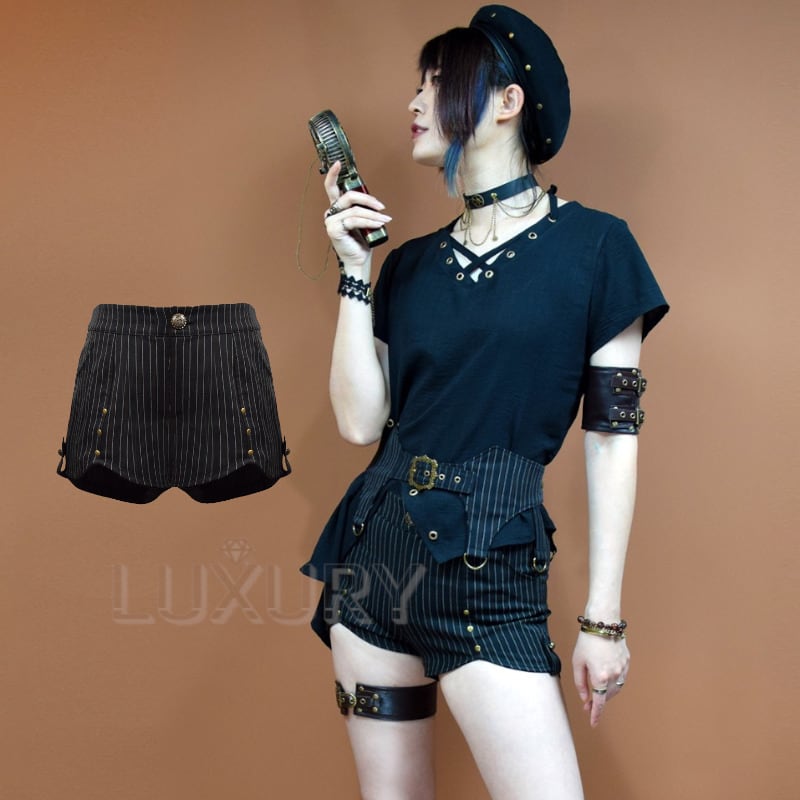 ストライプパンツ SteamPunk スチームパンク 春夏 ショートパンツ タイト 美脚 美シルエット ストライプ ブラック 撮影 イベント ボトムス パンツのみ Lolita ロリィタ ゴスロリ ロリータファッション loli5389
