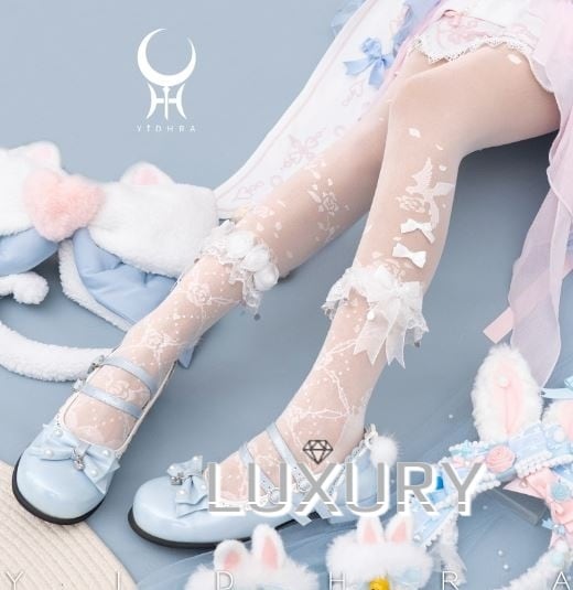 ストッキング Yidhra 通年 春秋 春夏 タイツ 柄 フリル リボン 透け感 雑貨 小物 かわいい 甘ロリ クラロリ 姫ロリ メイド メイド風 Lolita ロリィタ ゴスロリ ロリータファッション loli5397