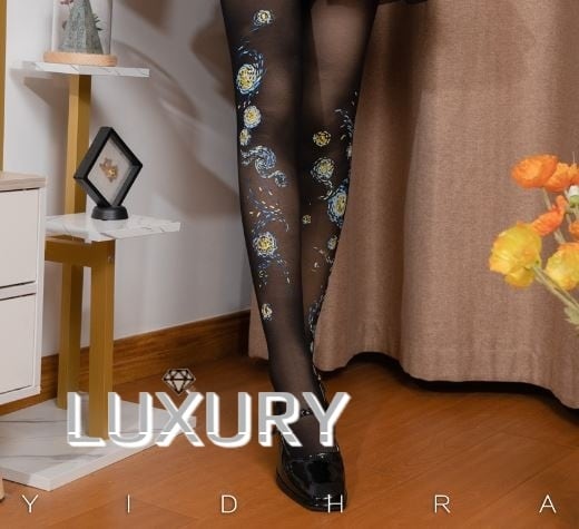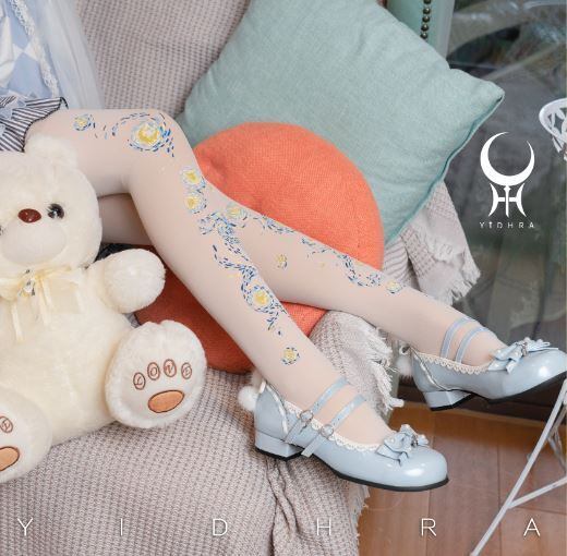 花柄ストッキング 2色 Yidhra ホワイト 春夏 春秋 アシンメトリー アシメ 雑貨 小物 ストッキング フリーサイズ 透け感 甘ロリ 姫ロリ クラロリ Lolita ロリィタ ゴスロリ ロリータファッション loli5409