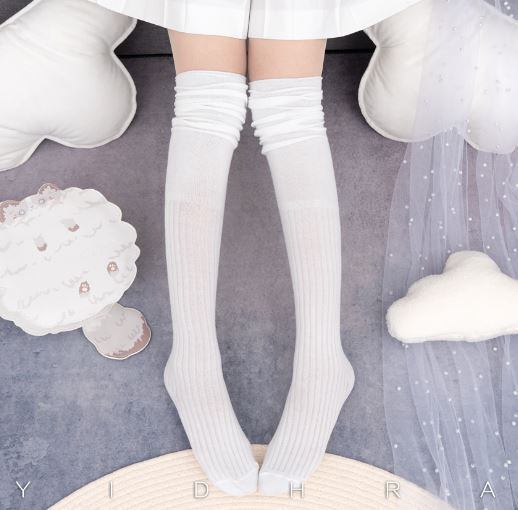ニーハイソックス Yidhra 春夏 春秋 ホワイト ロング 靴下 ソックス 無地 雑貨 小物 フリーサイズ シンプル Lolita ロリィタ ゴスロリ ロリータファッション loli5411