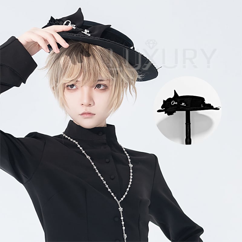 【納期130日】ハット princess Chronicles ヘッドドレス 帽子 雑貨 小物 チャーム付き おしゃれ カンカン帽 男装 ゴシック 撮影 イベント Lolita ロリィタ ゴスロリ ロリータファッション loli5416