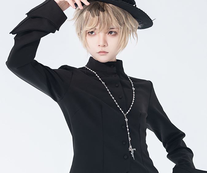 ロリータファッション/ブラウス/トップス/長袖/ボタン/前開き/ハイネック/無地/シック/男装/ゴシック/ロマンティック/シンプル/森ガール/メイド/メイド風/エレガント/上品/レトロ/お茶会/撮影/舞台/撮影用/発表会/クリスマス/バレンタイン/イベント/結婚式/ウェディング/二次会/謝恩会/デート/お呼ばれ/パーティ/デート