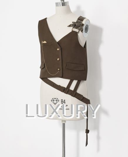 ロリータファッション/ベスト/トップス/ノースリーブ/カーキ/無地/シック/男装/ゴシック/ロマンティック/シンプル/森ガール/メイド/メイド風/エレガント/上品/レトロ/お茶会/撮影/舞台/撮影用/発表会/クリスマス/バレンタイン/イベント/結婚式/ウェディング/二次会/謝恩会/デート/お呼ばれ/パーティ/デート