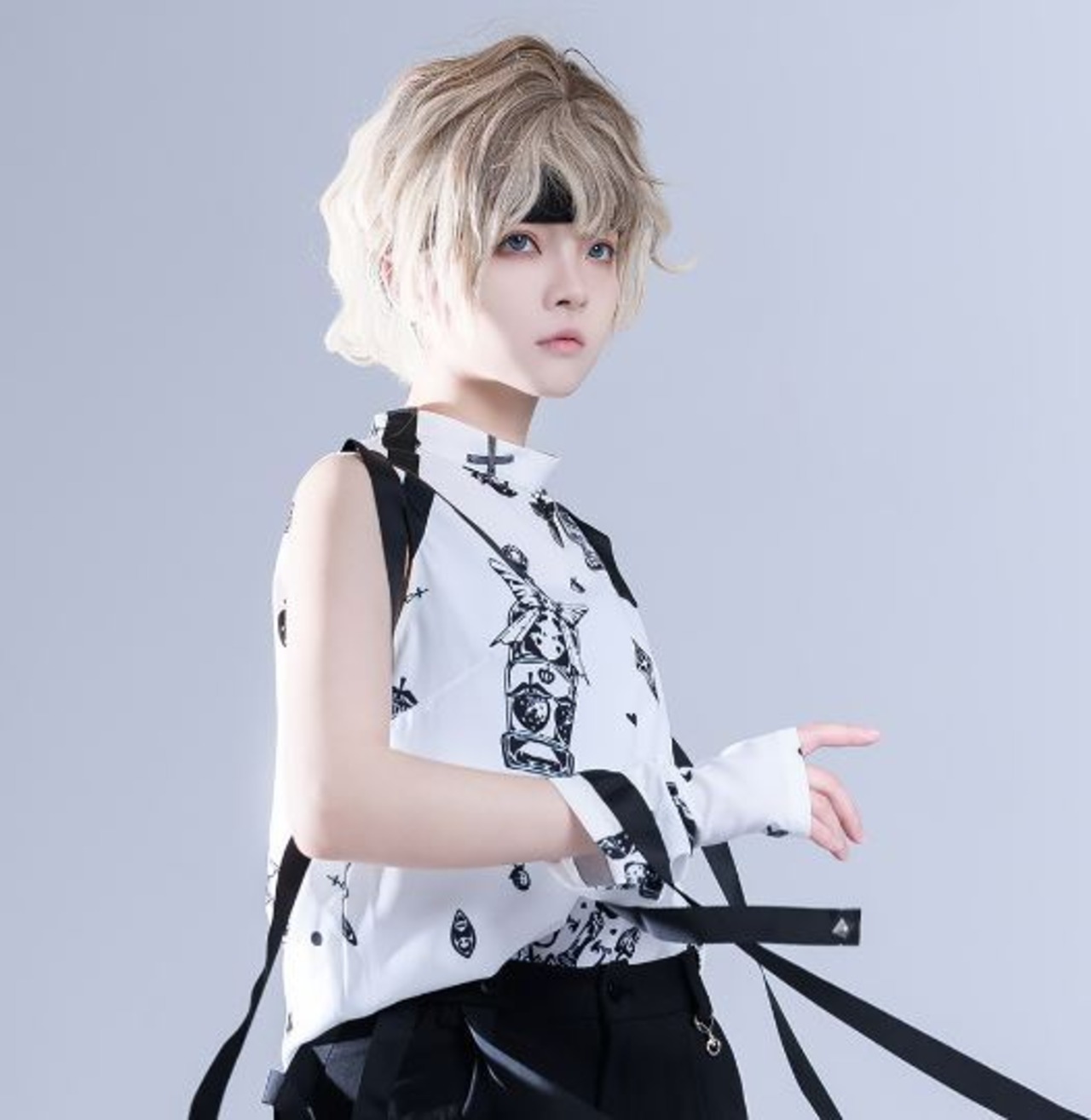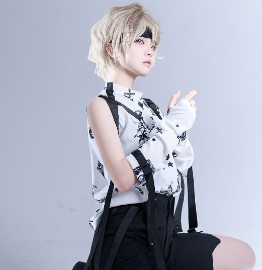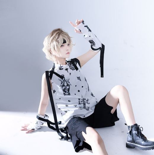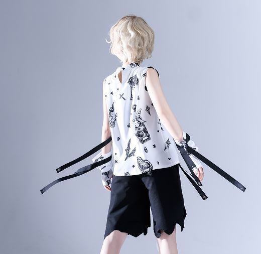 タンクトップ princess Chronicles 春夏 ノースリーブ バイカラー ホワイト トップス 男装 プリント 総柄 かっこいい おしゃれ Lolita ロリィタ ゴスロリ ロリータファッション