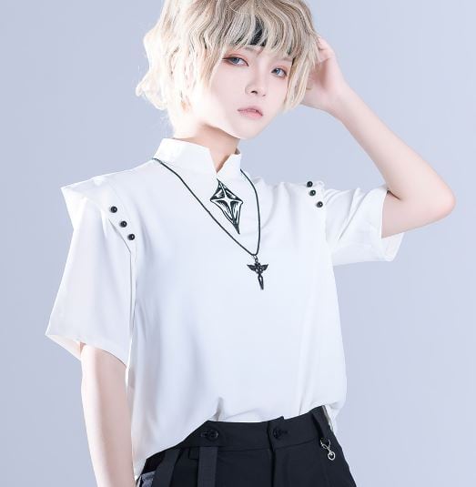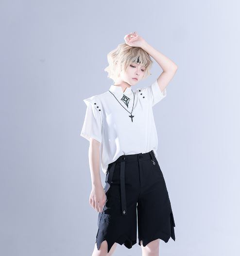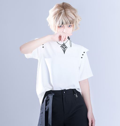 ブラウス princess Chronicles 春夏 カットソー トップス バイカラー ホワイト トップス 男装 プリント かっこいい おしゃれ Lolita ロリィタ ゴスロリ ロリータファッション loli5427