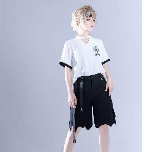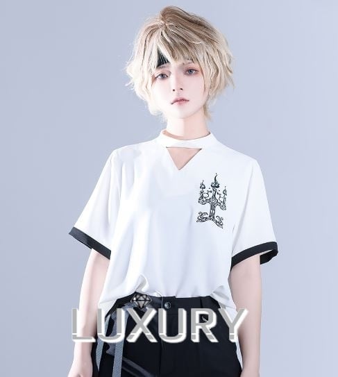 Tシャツ princess Chronicles 春夏 カットソー トップス バイカラー ホワイト トップス 男装 プリント かっこいい おしゃれ Lolita ロリィタ ゴスロリ ロリータファッション loli5428