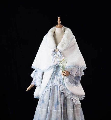 ケープ 秋冬 春秋 肌掛け 羽織り マント フェイクファー ホワイト 甘ロリ 大きいサイズ サイズ豊富 小物 雑貨 ふわふわ Lolita ロリィタ ゴスロリ ロリータファッション loli5481