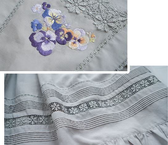 パンジー 刺しゅうエプロン 2色 春秋 通年 フリル 刺しゅう 甘ロリ 姫ロリ 森ガール ドール メイド メイド風 ひざ丈 ホワイト グレー Lolita ロリィタ ゴスロリ ロリータファッション loli5501