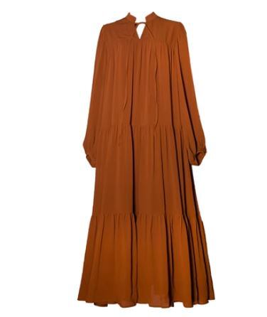 ロングワンピース 秋冬 春秋 ブラウン 長袖 バルーンスリーブ リボン ゆったり フレア ふんわり パーティ お呼ばれ おでかけ デート セミロリータ semil0475
