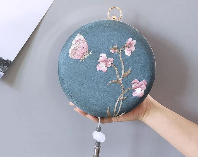 パーティバッグ 2タイプ 刺しゅう 通年 オールシーズン 蝶々 花柄 スモークブルー 丸型 華ロリ 中国風 チャイナ チェーン コンパクト かわいい 上品 エレガント 雑貨 小物 Lolita ロリィタ ゴスロリ ロリータファッション loli5519