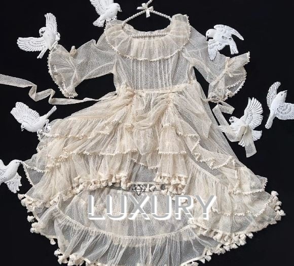 ロリータファッション/甘ロリ/秋冬/春秋/ワンピース/ワンピ/ロング丈/フリンジ/長袖/透け感/レース/フリル/ふんわり/姫ロリ/森ガール/メイド/メイド風/エレガント/上品/レトロ/お茶会/撮影/舞台/撮影用/発表会/クリスマス/バレンタイン/イベント/結婚式/ウェディング/二次会/謝恩会/デート/お呼ばれ/パーティ/デート