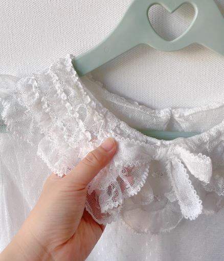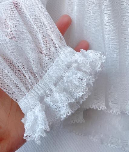 ロリータファッション/甘ロリ/ブラウス/春夏/春秋/レース/長袖/ドット/透け感/リボン/フリル/重ね着/レイヤード/ふんわり/姫ロリ/森ガール/メイド/メイド風/エレガント/上品/レトロ/お茶会/撮影/舞台/撮影用/発表会/クリスマス/バレンタイン/イベント/結婚式/ウェディング/二次会/謝恩会/デート/お呼ばれ/パーティ/デート