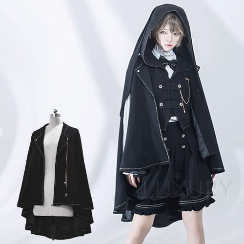 ジャケット princess Chronicles 秋冬 ブラック ミディアム丈 無地 シンプル 着回し 男装 トップス 大きいサイズ サイズ豊富 Lolita ロリィタ ゴスロリ ロリータファッション loli5615