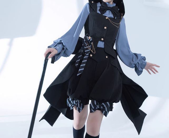 ベスト princess Chronicles 秋冬 フーディ フード付き ブラック 無地 リボン 男装 トップス シンプル 着回し 大きいサイズ サイズ豊富 Lolita ロリィタ ゴスロリ ロリータファッション loli5620