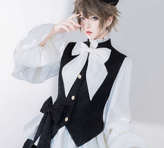 ロリータファッション/秋冬/男装/カジュアル/ブラウス/リボン/トップス/長袖/無地/クラシカル/姫ロリ/森ガール/メイド/メイド風/エレガント/上品/レトロ/お茶会/撮影/舞台/撮影用/発表会/クリスマス/バレンタイン/イベント/結婚式/ウェディング/二次会/謝恩会/デート/お呼ばれ/パーティ/デート