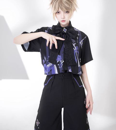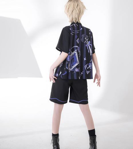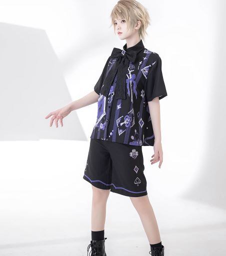ブラウス+パンツ princess Chronicles 春夏 セットアップ プリント半袖 2点セット シンプル 着回し 男装 トップス 大きいサイズ サイズ豊富 Lolita ロリィタ ゴスロリ ロリータファッション